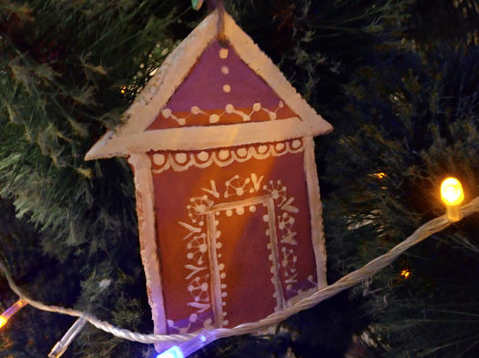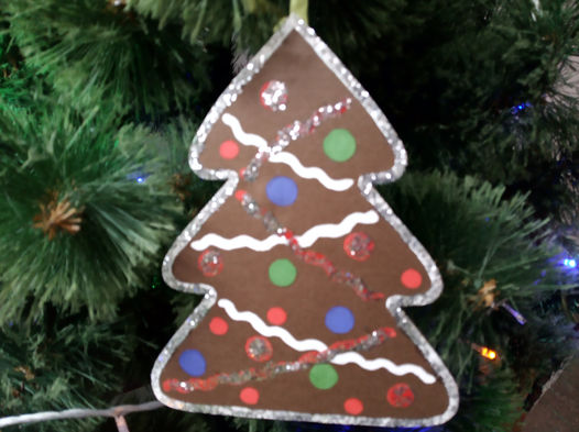 А для зеленої красуні в холі дитсадка приготували прикраси в пряниковому стилі: це медові чоловічки, олені, гноми; пряникові будиночки і ялинки. Здається, ялинка навіть повеселішала!