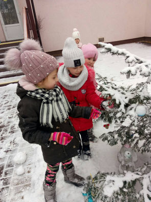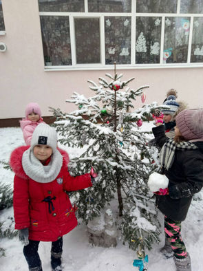 Цьогоріч вони вирішили «одягнути» у святкову сукню і ялиночку біля ґанку садочка.